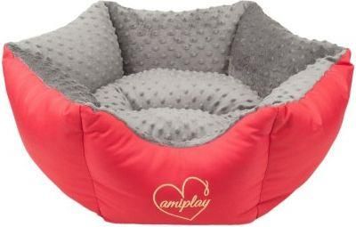 Legowisko amiplay Korona Babydoll L Cechy produktu: Produkt: legowisko Producent: amiplay Seria: Babydoll Model: Korona Rozmiar: L Szerokość zewnętrzna: 68 cm Szerokość poduchy (d): 48 cm Wysokość: 23 cm Przeznaczenie: średni pies Materiał: miękka tkanina minky oraz wytrzymały poliester Wypełnienie poduchy: specjalna mieszanka puchu silikonowego Rozwiązanie: 2in1- dwustronna poduszka Rozbieralne: nie- wyciągana poducha Czyszczenie: możliwość prania poduchy Kolor: czerwono-szary Jak dobrać legowisko? Wybór odpowiedniego legowiska jest jednym z najtrudniejszych, jaki czeka właściciela psa. Powinno ono zarówno spełniać funkcję wypoczynkową dla naszego ulubieńca, jak i pasować do wystroju. Musi mieć odpowiednią wielkość dla psa, a równocześnie mieścić się w przestrzeni dla niego przeznaczonej. Nie są to łatwe do pogodzenia wymagania. Staramy się pomóc w ich spełnieniu oferując wiele modeli i wzorów ułatwiających wybór tego najodpowiedniejszego. Dobierając odpowiedni rozmiar legowiska warto zmierzyć powierzchnię, jaką zajmuje pies śpiąc. Jeśli nie mamy takiej możliwości zapytajmy hodowcę lub oprzyjmy się o informację o wielkości psa w ofercie. Legowisko powinno pozwolić psu na obracanie się i ułożenie w wygodnej pozycji. Nie powinno jednak być zbyt duże, gdyż może to powodować, że ulubieniec nie będzie mógł wtulić się, szukając w nim bezpieczne schronienie. Legowisko owalne amiplay Korona Babydoll to doskonały wybór dla właścicieli psów ceniących pluszowy komfort. Duża grubość poduchy wypełnionej specjalną mieszanką syntetycznego puchu i pianki zapewnia miękkość oraz bardzo dobrą izolację termiczną. Wyśmienicie sprawdzi się dla psów, które w trakcie snu poszukują bezpiecznego, osłoniętego miejsca. Seria amiplay Babydoll została stworzona z wykorzystaniem materiałów wysokiej jakości z dbałością o niezwykłą wygodę. Aby to uzyskać zastosowano niezwykle miłą w dotyku tkaninę minky. Zewnętrzna część legowiska oraz druga strona poduszki zostały wykonane z wytrzymałego i łatwego w utrzymaniu czystości poliestru. Użyte tkaniny cechują się dużą odpornością na ścieranie oraz uszkodzenia mechaniczne. Legowiska seria Babydoll cechują się niezwykłym komfortem, który przypadnie szczególnie do gustu szczeniakom w ich nowych domach. Dzięki zastosowaniu miękkiej tkaniny minky oraz poliestru o kilku kolorach będą się doskonale prezentowały w wielu aranżacjach. Ich niebanalny wygląd, w odpowiedniej kolorystyce, będzie stanowić ciekawy element dekoracyjny, będąc jednocześnie komfortowym miejscem wypoczynku dla naszych pupili. Legowisko jest wyposażone w system 2in1 firmy amiplay, dzięki któremu poduszka jest dwustronna i sam decydujesz o wybranej aranżacji legowiska. Możesz ją też szybko zmienić, zależnie od potrzeb z miękkiej i komfortowej na bardziej gładką, dla łatwiejszego utrzymania czystości. Zapewnia to także większą trwałość legowiska. Wszystkie części legowiska można prać ręcznie lub w pralce. Firma amiplay dołożyła wszelkiej staranności w wykonanie tej serii. Zarówno materiały, nici, jak i cały proces produkcji podlega kontroli jakości. Dzięki takiemu podejściu możemy zaoferować Państwu wysokiej klasy legowiska w przystępnej cenie. Wszystkie produkty firmy amiplay zostały zaprojektowane i wykonane w Polsce.