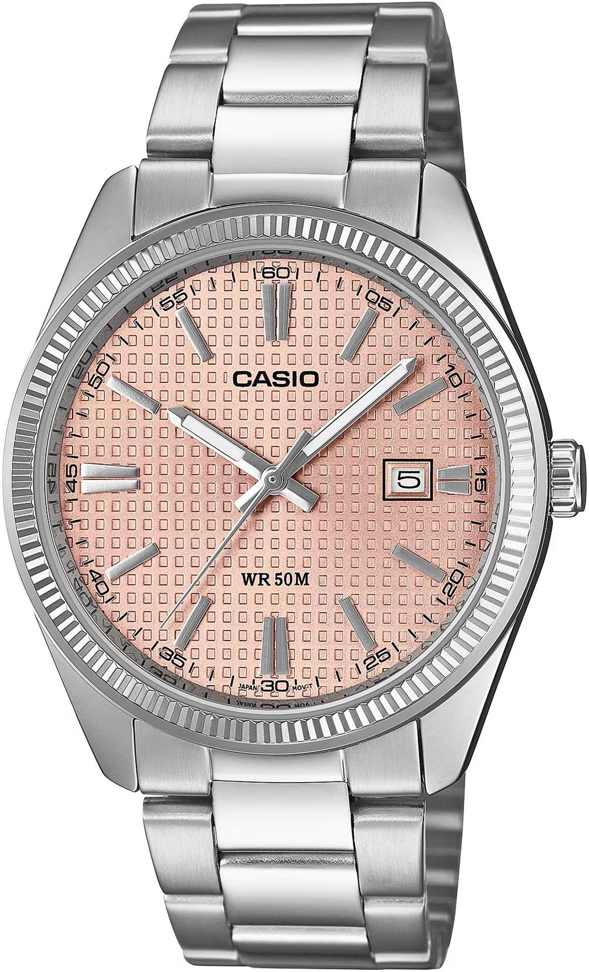 Zegarek męski CasioMTP-1302PE-4AVEF Timeless Collection różowe złoto Mechanizm zegarka: Zegarek męski Casio na bransolecie MTP-1302PE-4AVEF wyposażony jest w kwarcowy mechanizm, zasilany za pomocą baterii. Posiada bardzo wysoką dokładność mierzenia czasu +/- 10 sekund w przeciągu 30 dni. W …