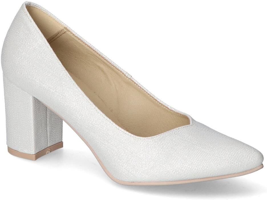 Eleganckie czółenka znanej marki Krzyś-But: - cholewka została wykonana ze skóry ekologicznej - wnętrze zostało pokryte w całości skórą ekologiczną aby zapewnić komfort podczas użytkowania - wkładka wewnętrzna została wykonana ze skóry ekologicznej - obcas o wys. 7,5 cm zapewnia stabilizację - srebrny kolor oraz modny fason sprawią, że każda kobieta poczuje się w nich wyjątkowo!