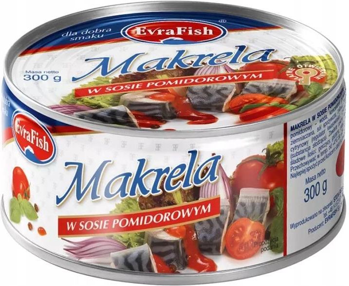 Pakiet 18szt EVRAFISH Makrela w pomidorowym 300g EVRAFISH Makrela w sosie pomidorowym 300g Masz ochotę na rybną przekąskę? Chcesz, by Twoje ulubione kanapki nabrały niepowtarzalnego smaku? Wybierz Makrelę w sosie pomidorowym marki EvraFish i przekonaj się, jak smakuje jakość z polskich zakładów. …
