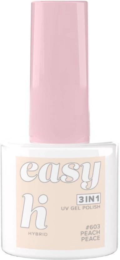 Pastelowy, mleczno-brzoskwiniowy #603 Peach Peace to odcień, który został zainspirowany miłością i wolnością. Jest na tyle delikatny, że dostosowuje się do każdej pory roku oraz na tyle wyjątkowy aby móc się wyróżniać. Np. latem używany sam na wszystkich paznokciach podkreśli każdą opaleniznę. W towarzystwie innych kolorów odznacza się swoją spokojną i słodką jak brzoskwiniowy koktajl barwą. To idealny kolor, którym możesz wyrazić siebie i zrobić to na swoich zasadach, a dzięki lakierom easy 3w1 zyskujesz czas aby żyć pełnią życia! Peace, Love & Easy <3Produkt testowany dermatologicznie.Wegańska formuła.STOSOWANIE Proste jak 1,2,3 To Twój pierwszy raz? Easy! Poniżej podpowiadamy jak w kilku prostych krokach zrobić samodzielnie mani lakierami easy 3w1: KROK 1: Nadaj kształt paznokciom przy użyciu pilnika, zmatuj płytkę bloczkiem polerskim, a następnie odtłuść paznokcie Nail Cleanerem hi hybrid. KROK 2: Pomaluj paznokcie cienką warstwą lakieru hi hybrid easy 3w1, pomaluj także brzeg paznokcia i utwardź w lampie (60s w lampie o mocy 24W). KROK 3: Powtórz krok 2 nakładając kolejne warstwy aż do uzyskania satysfakcjonującego krycia (rekomendujemy nakładać 3 cienkie warstwy produktu). KROK 4: Na koniec przetrzyj lakier wacikiem nasączonym Nail Cleanerem hi hybrid. Czy może być jeszcze prościej? CZAS UTWARDZANIALAMPA HI HYBRID 24W 60s ŚRODKI OSTROŻNOŚCI Chronić przed dziećmi. Proszę uważnie przeczytać sposób użycia. Unikać kontaktu ze skórą. Unikać kontaktu z oczami. Nie wdychać bezpośrednio par produktu. Może powodować reakcję alergiczną. Należy utwardzić w lampie UV/LED. Tylko do użytku profesjonalnego. PRZECIWWSKAZANIA: Jakiekolwiek zmiany chorobowe płytki oraz w okolicy płytki paznokcia m.in.: grzybica paznokci i około paznokciowa, zanokcica, drożdżyca w obrębie pola zabiegowego, brodawki okołopaznokciowe i podpaznokciowe, łuszczyca paznokci. Oddzielanie się płytki paznokciowej (onycholiza). Stany zapalne lub alergiczne. Urazy paznokci, infekcje paznokci i ich okolic. Skaleczenia w obrębie pola zabiegowego. Podrażnienia skórek oraz płytki paznokciowej powstałe w trakcie wykonywania klasycznego manicure np. w trakcie wycinania skórek. Nadwrażliwość na którykolwiek ze składników produktu.
