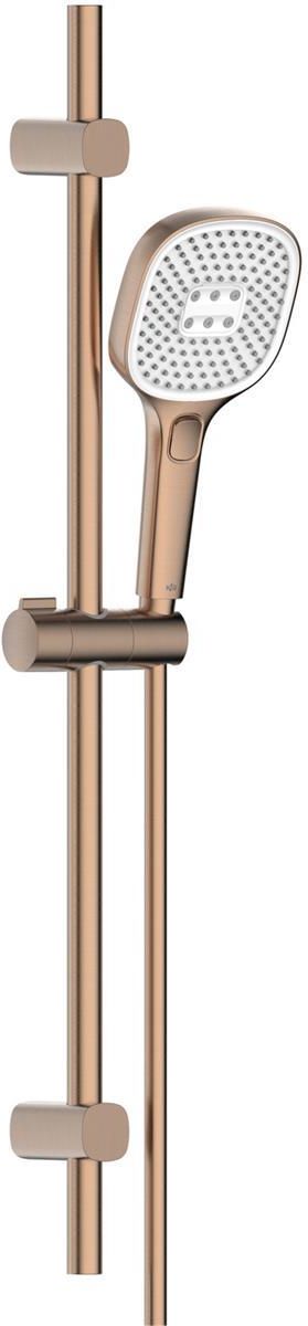 Zestaw Prysznicowy Natynkowy MALAGA Brushed Rose Gold 841-352-34 Design wysokich lotów Malaga łączy piękno z troską o środowisko. Wyrazista forma o prostych liniach i subtelnych załamaniach nadaje baterii minimalistyczny charakter, stanowiąc doskonałe dopełnienie współczesnych łazienek. Dominujące zaokrąglenia prostokątnych kształtów przewijają się spójnie przez wszystkie elementy każdego modelu. Powłoki są trwałe dzięki technologii PVD oraz galwanizacji, a zastosowanie oszczędnościowych napowietrzaczy redukuje zużycie wody nawet o 50%. Wersja Brushed Rose Gold to propozycja dla osób, które cenią wyrafinowane detale i wnętrza z nutą luksusu. Ciepły, lekko satynowy odcień złota doskonale wpisuje się w aranżacje glamour, modern classic, jak również we wnętrza inspirowane stylem japandi i soft loft. Dzięki szczotkowanemu wykończeniu bateria nie tylko prezentuje się elegancko, ale również jest praktyczna – mniej widoczne są na niej odciski palców czy drobne zacieki. Trwałość koloru i ekologia Metoda nakładania powłoki PVD to nie tylko intensywna i trwała barwa, ale także ekologiczne rozwiązanie – proces nie wymaga stosowania szkodliwych substancji chemicznych. Dzięki osadzaniu ultracienkiej warstwy metalu w warunkach próżniowych powłoka zyskuje wyjątkową odporność na korozję oraz zarysowania. Dane Techniczne Kolor: brushed rose gold PVD Montaż: ścienny Materiał: mosiądz + tworzywo ABS Przepływ wody [l/min]: 11 Ilość strumieni rączki natrysku: 3 Długość węża [mm]: 1500 Materiał węża: PVC Opakowanie zawiera Drążek natrysku Uchwyty ścienne ‒ 2 szt. (w tym 1 uchwyt z możliwością dostosowania położenia do starych otworów) Zestaw montażowy (2 wkręty z kołkami ściennymi) Rączka natrysku z uchwytem Wąż PVC (L=1500 mm) Certyfikaty i deklaracje Produkt wykonany zgodnie z normą PE-EN 1112:0218 Posiada znak budowlany Atest higieniczny Krajowa deklaracja właściwości użytkowych