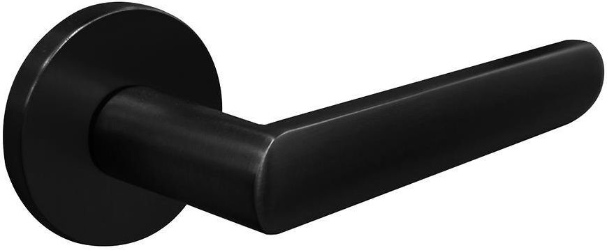 Klamka do drzwi wewnętrznych PROXIMA w kolorze czarnym na rozecie okrągłej. W opakowaniu komplet.