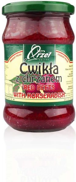 KARTON ZBIORCZY ZAWIERA - 6 SZTUKSKŁADNIKI:buraki ćwikłowe (przetarte, 76 %), chrzan (przetarty, 10 %), woda, ocet spirytusowy, cukier, sólPrzechowywać w suchym i chłodnym miejscu