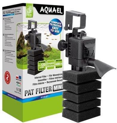 AQUAEL PAT MINI – miniaturowy filtr turbinowy PAT MINI przeznaczony do małych akwariów słodkowodnych. Urządzenie to składa się z maleńkiej głowicy oraz starannie selekcjonowanej gąbki filtracyjnej. Dzięki zastosowaniu innowacyjnych rozwiązań konstrukcyjnych głowica ta posiada wydajność maksymalną aż 400 l/h, czyli tyle, ile typowy średniej wielkości turbinowy filtr akwariowy. A wszystko to przy poborze energii nie większym niż 4 W. W rezultacie PAT MINI zapewnia wydajną filtrację nawet w 120-litrowym zbiorniku. Czy jednak nie zrobi nadmiernej „pralki” w dużo mniejszym akwarium? Nie ma obaw, bowiem na przedniej części głowicy znajduje się przełącznik sterujący wydajnością pozwalający na dostosowanie tego parametru do potrzeb każdego akwarysty. Filtr posiada również końcówkę kierunkową, która umożliwia ograniczenie prądu wody w akwarium poprzez jego skierowanie np. na ściankę zbiornika. Został wyposażony także w rurkę napowietrzającą podłączaną do dyszy wylotowej, co pozwala na skuteczne i wydajne natlenianie wody w zbiorniku. Wchodząca w skład filtra PAT MINI gąbka wyjątkowo skutecznie realizuje filtrację mechaniczną w akwarium wychwytując z wody nawet najdrobniejsze widoczne zanieczyszczenia. Poza tym stanowi idealne podłoże do osiedlania się szczepów pożytecznych bakterii nitryfikacyjnych utleniających toksyczne dla ryb amoniak i azotany. Konserwacja gąbki jest bardzo prosta i trwa zaledwie kilkadziesiąt sekund. Zapewnimy w ten sposób ciągłość działania filtra i zagwarantujemy, że mieszkańcy naszego akwarium będą pływać w krystalicznie czystej i wolnej od toksyn wodzie. Zainstalowanie urządzenia jest bardzo proste dzięki wyposażonemu w mocne przyssawki uchwytowi posiadającemu dodatkowo funkcjonalny wieszak powalający na zaczepianie filtra na krawędzi szyby akwariowej. Filtr PAT MINI może współpracować z deszczownią AQUAEL oraz sterylizatorem wody AQUAEL MINI UV. Dostępne są również wymienne wkłady gąbkowe, standardowe, a także w wersji CARBOMAX (nasycone węglem aktywnym do usuwania z wody zanieczyszczeń chemicznych oraz przebarwień) oraz PHOSMAX (do usuwania z wody fosforanów, co skutecznie ogranicza wzrost glonów).