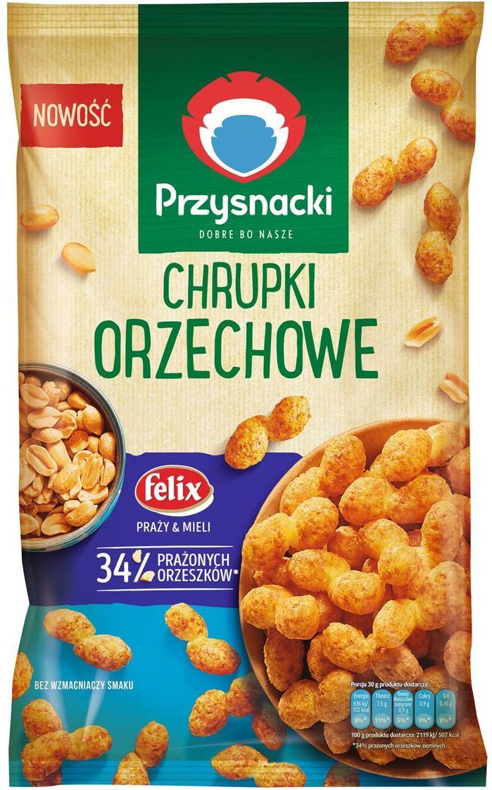 Przysnacki Chrupki Orzechowe 100 G ❤️ PRZYSNACKI ❤️ __________________________________________________________________ ✔️ Poznajcie wyjątkowe chrupki orzechowe, które powstały z połączenia doświadczenia i pasji dwóch -ubionych marek słonych przekąsek Przysnacki oraz Felix. Odkryjcie smak słynnych …