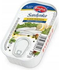 EVRA - SARDYNKI W OLEJU - 125 G Masz ochotę na przepyszną rybną przekąskę? Chcesz, by Twoje ulubione kanapki nabrały niepowtarzalnego smaku? Wybierz rybną konserwę polskiej marki EvraFish i przekonaj się, jak smakuje naturalna jakość. Sardynki w oleju rzepakowym to najwyższej jakości rybny specjał prosto z Morza Bałtyckiego o znakomitym smaku i aromacie. Dzięki unikalnej kompozycji przypraw i odpowiednio wyselekcjonowanym składnikom wyraźnie wyróżnia się jakością na tle konkurencji. Masa netto: 125 g Opakowanie: puszka z wieczkiem typu easy open. Nie wymaga otwieracza. Konserwa: produkt rybny, sterylizowany. Składniki: 70% szproty bałtyckie bez głów (Sprattus sprattus, złowione w Morzu Bałtyckim: FAO 27 IIId, za pomocą włoków), 29% olej rzepakowy, sól, regulator kwasowości: kwas octowy. Produkt może zawierać gorczycę, zboża zawierające gluten (z pszenicy, jęczmienia i owsa), mleko, seler, soję i jaja. To doskonały pomysł zarówno na szybką przekąskę w plenerze, jak i dodatek do śniadania. Te przepyszne malutkie rybki z dodatkiem oleju rzepakowego bardzo dobrze nakładają się na pieczywo. Stwórz z nich doskonałe kanapki dla całej rodziny w zależności od fantazji i gustu. Nie potrzebujesz lodówki, żeby zabrać je ze sobą! Niewątpliwym plusem konserwy jest to, że nie zepsuje się jak wędlina czy ser, dlatego pakiet zamknięte opakowanie sardynek w oleju+ pieczywo da Ci możliwość przygotowania na szybko świeżego posiłku. To poręczne opakowanie z wieczkiem typu easy open otworzysz w każdych warunkach! Możesz je śmiało wrzucić do plecaka - nie odczujesz jego wagi, a będziesz mieć pewność, że po długiej wędrówce zaspokoisz głód i dostarczysz organizmowi energii do kolejnych działań. Nie musisz się też martwić, że konserwa uwolni swoją zawartość do Twojego plecaka. Puszka jest naprawdę solidnie wykonana i niestraszne jej byle wstrząsy - została skonstruowana tak, by zachować szczelność opakowania w różnych warunkach. Idealne rozwiązanie w domu, podczas wyprawy czy obozowania przy ognisku. Pozycja wprost obowiązkowa dla miłośników aktywnej turystyki. WARTOŚĆ ODŻYWCZA W 100 G PRODUKTU: Wartość energetyczna: 1220 kJ / 295 kcal Tłuszcz: 27 g - w tym kwasy tłuszczowe nasycone: 3,0 g Węglowodany: 0,0 g - w tym cukry: 0,0 g Białko: 13 g Sól: 1,0 g Przechowywać w suchym pomieszczeniu w temperaturze od +4°C do +25°C. Spożyć bezpośrednio po otwarciu.