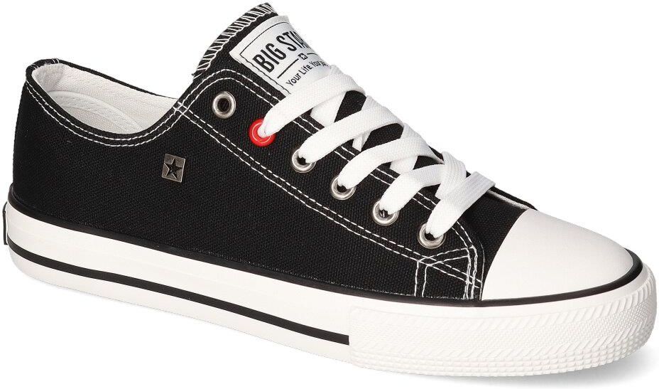 Modne trampki popularnej firmy Big Star:- cholewka wykonana została z wysokiej klasy materiału tekstylnego - wnętrze wykonane z wygodnego materiału tekstylnego- miękka materiałowa wkładka gwarantuje komfort chodzenia - podeszwa o grubości 3 cm zapewnia odpowiednią stabilizację - sznurowana cholewka zapewnia dopasowanie obuwia do tęgości stopy i ułatwia zakładanie - klasyczny czarny kolor i modny fason tworzą idealne połączenie!