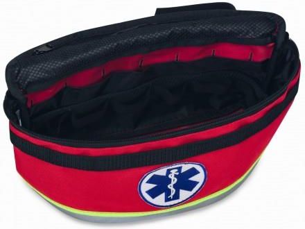 Saszetka z regulowanym pasem biodrowym ,zapinanym na klamrę zatrzaskową. Wewnątrz saszetki znajdują się dwie otwarte kieszenie i uchwyty z taśmy gumowej. Na klapie saszetki kieszeń zamykana na suwak Całość zamykana na zamek błyskawiczny. Saszetka może także służyć jako jeden z modułów torby PSP R1 …