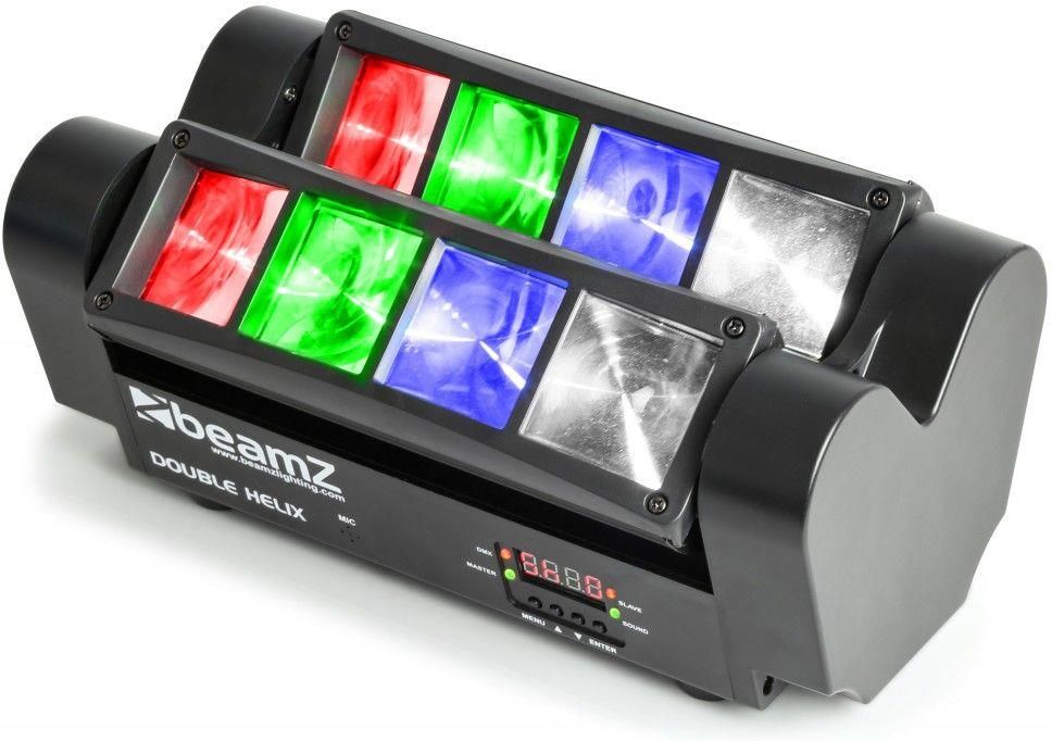 PODWÓJNY REFLEKTOR LED BeamZ 8x 3W diody CREE Idealny do stosowania jako oświetlenie frontowe na scenie, przyda się w instalacjach w dyskotekach na koncertach czy nawet jako oświetlenie mobilne etc Kod produktu: 150.303 BeamZ MHL820 Double Helix MKII efekt świetlny LED RGB 8x 3W Wspaniały i …
