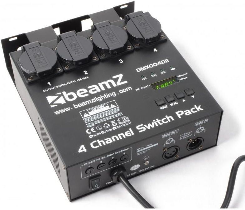 Kontroler efektów światła DMX 4-kanały SWITCHPACK Kod produktu: 154.029 KONTROLER DMX Masz dość niedostatecznego wyposażenia? Chcesz zdalnie sterować swoim sprzętem? Aby zapewnić najbardziej imponujący spektakl? Kontroler DMX BeamZ umożliwia zdalne sterowanie efektami świetlnymi lub plamkami. Krótko mówiąc, jeśli szukasz urządzenia pozwalającego na włączanie i wyłączanie instalacji świetlnej, ten kontroler BeamZ jest dla Ciebie! NAJLEPSZE WYPOSAŻENIE Kontroler DMX jest bardzo dobrze wyposażony! Rzeczywiście, dzięki 16 zintegrowanym programom, regulowanej prędkości śledzenia i wyjściom poprzez 4 połączenia uziemiające, DMX512 zrobi na tobie wrażenie! Łatwy w użyciu, możesz zaufać marce BeamZ! IDEALNY DLA DŹWIĘKOWYCH PROFESJONALISTÓW. Czy jesteś profesjonalnym DJ-em i pracujesz na każdym wydarzeniu z menedżerem światła? Ten kontroler DMX jest dla Ciebie.Rzeczywiście, dzięki DMX512 BeamZ, możesz skupić się na swoich dźwiękach i pozwolić kontrolować efekty świetlne, aby stworzyć wyjątkowy pokaz wysokiej jakości! Wszystkie produkty BeamZ z tej gamy zostały przemyślane i zaprojektowane dla miłośników pokazów i wydarzeń. Ponieważ znamy wymagania zawodów związanych z animacją sceniczną i lekką, oferujemy produkty wysokiej jakości. Korzystasz z bardzo kompletnego zakresu funkcjonalności, o dużej niezawodności nawet w dłuższej perspektywie, a wszystko to za zawsze uczciwą cenę. DMX512 od marki BeamZ to 4-kanałowy switchpack DMX przełączający efekty świetlne, takie jak włączanie i wyłączanie światła PAR poprzez wbudowane programy. Prędkość 16 wbudowanych trybów może być kontrolowana. Sterowanie kanałem odbywa się poprzez menu łatwego dostępu. Opis produktu Sterowanie DMX lub w trybie autonomicznym 16 wbudowanych sekwencji Regulowana prędkość 4 gniazda SHUKO Dane techniczne Liczba wyjść: 4 Max. load: 16A Max. load/Channel: 5A Zasilanie: 230Vac, 50Hz Wymiary: 260 x 210 x 90mm Waga: 2.4kg UWAGA: ten model to switchpack i ma tylko możliwość włączania i wyłączania podłączonych urządzeń, bez efektu ściemniania.