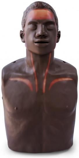 Manekin czarnoskórej osoby dorosłej do nauki RKO z wizualizacją krążenia krwi oraz dedykowaną aplikacją i połączeniem bluetooth. Informacja zwrotna na temat skuteczności prowadzonych uciśnięć klatki piersiowej oraz sztucznej wentylacji odbywa się na wszelkich możliwych sposobach, a to wszystko w czasie rzeczywistym. Aplikacja mierzy tempo i głębokość uciśnięć, ułożenie rąk, relaksację klatki piersiowej, tempo i objętość wentylacji. Manekin Brayden OBI - Doskonałe narzędzie do zaawansowanego treningu RKO Manekin Brayden OBI to najnowsze osiągnięcie w dziedzinie szkolenia z resuscytacji krążeniowo-oddechowej (RKO), które przynosi szereg korzyści dla instruktorów i uczestników kursów. Oferowany zarówno jako kompletny manekin, jak i zestaw do konwersji dla istniejących modeli, Brayden OBI wprowadza wszechstronność i realizm do każdego programu szkoleniowego. Kluczowe Korzyści Realistyczny wygląd i parametry fizyczne: Brayden OBI jest dokładnym odwzorowaniem dorosłego mężczyzny, umożliwiając realistyczny trening wentylacji dzięki anatomicznie precyzyjnym nosie i ustom. Skóra wykonana z materiałów wolnych od lateksu, która jest przyjemna w dotyku i łatwo przyjmuje elektrody treningowe. Realistyczne wrażenia z treningu: Manekin zapewnia realistyczny opór klatki piersiowej, dokładnie odwzorowując doświadczenie resuscytacji na prawdziwej osobie. Wyraźne punkty anatomiczne, takie jak żebra i wyrostek mieczykowaty, ułatwiają prawidłowe wykonanie RKO, a ruchomy kark pozwala na realistyczne przechylenie głowy i uniesienie podbródka. Wszechstronność wentylacji: Możliwość stosowania różnych metod wentylacji, w tym usta-usta, maski twarzowej RKO (Pocket Mask) oraz resuscytatora, z realistycznym uniesieniem klatki piersiowej. Bezpieczeństwo higieniczne: Konstrukcja manekina umożliwia wydychanie powietrza przez tył głowy, co minimalizuje ryzyko zakażenia krzyżowego, chroniąc zdrowie uczestników szkoleń. Zaawansowane funkcje wizualizacji: Model Brayden PRO oferuje w czasie rzeczywistym informacje zwrotne na temat skuteczności RKO, wizualizując przepływ krwi wieńcowej i mózgowej. Wersja LED pozwala na monitorowanie przepływu krwi, co pozwala na natychmiastową korektę technik resuscytacji. Kompleksowa analiza wyników: Dzięki aplikacji Brayden Online, użytkownicy mogą analizować kluczowe parametry RKO, takie jak głębokość i tempo uciśnięć, wydajność wentylacji oraz prawidłowe ułożenie rąk. Aplikacja jest bezpłatna i dostępna na różne urządzenia, umożliwiając jednoczesne podłączenie do sześciu różnych manekinów. Specyfikacja techniczna Wymiary: 60 x 30 x 20 cm Waga: 3,2 kg Temperatura użytkowania: od 15°C do 30°C Temperatura przechowywania: od -10°C do 50°C Wilgotność względna: od 5% do 95% Gwarancja: 2 lata Zasilanie: Baterie LR14 (typ C) 1.5V (6 baterii) lub opcjonalnie zasilacz AC Zawartość zestawu Kompletny manekin Brayden OBI Basic 10 maseczek do sztucznego oddychania Zapasowa skóra twarzy Zapasowe płuca Torba z funkcją maty 6 sztuk baterii LR14 Instrukcja obsługi