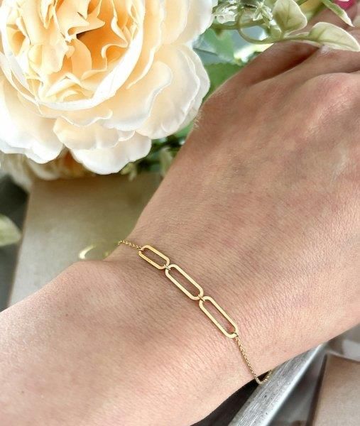 Złota bransoletka 585 z ozdobnymi ogniwami – BR.01241 Dodaj subtelnej elegancji każdej stylizacji dzięki naszej wyjątkowej bransoletce wykonanej ze złota próby 585. Model BR.01241 zachwyca nowoczesnym designem, który łączy delikatny łańcuszek z ozdobnymi, podłużnymi ogniwami. To biżuteria, która podkreśli Twoją kobiecość i styl – zarówno na co dzień, jak i na specjalne okazje. Cechy produktu:Materiał: Złoto 585 (14-karatowe)Waga: 1,30 gDługość: 17 cm + 2,5 cm przedłużka (regulowana)Zapięcie: Klasyczne, trwałe i łatwe w użytkowaniu Bransoletka doskonale prezentuje się zarówno solo, jak i w zestawieniu z innymi ozdobami. Idealna na prezent – zapakowana w eleganckie pudełko jubilerskie....