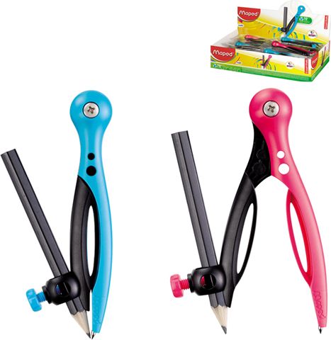 * cyrkiel MAPED ESSENTIALS * grafitowa końcówka * plastikowy * ramiona wykonane z włókna szklanego, co zapewnia większą wytrzymałość * mix kolorów wybieranych losowo: różowo-czarny, niebiesko-czarny * jednostka sprzedaży 1 sztuka