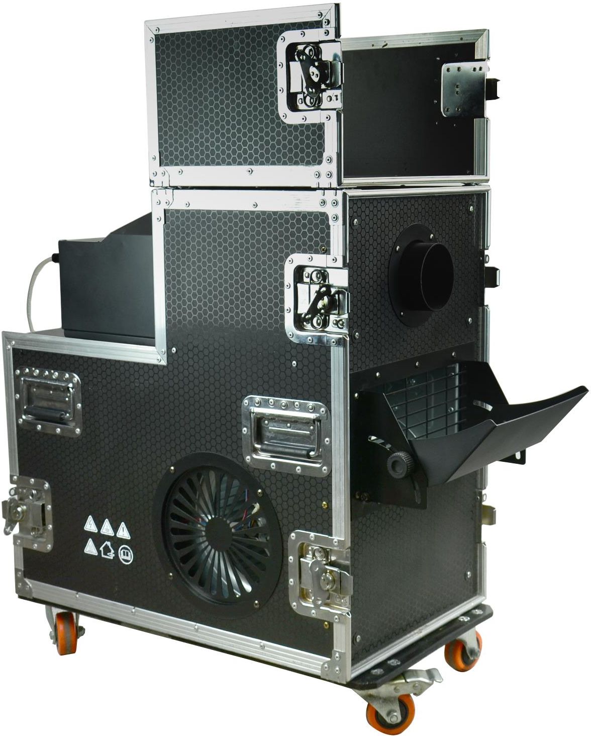 Hazer wodny - wytwornica mgły 5000W w Flightcase Bardzo mocny zamgławiacz do użytku wewnątrz i na zewnątrz. Używaj ze specjalnym płynem zamgławiającym na bazie wody. Kod produktu: SH4039 Wytwornica- Hazer wodny To wysokiej jakości, profesjonalny i mocny hazer w Flightcase o łącznej mocy 5000W. Wytwarza trwałe zamglenie bez emisji gęstych chmur mgły i dlatego jest idealny do inscenizacji wiązek światła i lasera w dyskotekach, klubach i na scenach. Profesjonalna wytwornica Najwyższej klasy maszyna do zamgławiania na bazie wody, zaprojektowana z myślą o bardzo wymagającym rynku profesjonalnym. Jego zdolność do wytwarzania wyjątkowo drobnej mgiełki atmosferycznej w krótkim czasie przy niskim poziomie hałasu sprawia, że jest to idealny wybór do średnich i dużych przedstawień, teatrów, studiów, klubów, barów, statków wycieczkowych, parków rozrywki i innych. 2 kanały DMX dla bardzo drobnego zamglenia Hazer jest kontrolowany przez dwa kanały DMX. Dzięki temu możliwe jest niezależne sterowanie wewnętrznym wentylatorem i wyjściem Haze. Przy pomocy wentylatora wyprodukowana mgła może być szeroko rozpowszechniona w lokalu. Bez pozostałości dla trwałych wspomnień Tłuste pozostałości należą do przeszłości. Dzięki płynowi na bazie wody nie musisz się martwić o pozostałości na scenie lub innym sprzęcie. Zaoszczędź czas na sprzątaniu i skoncentruj się na tym, co najważniejsze. Stwórz idealny pokaz świetlny, który zachwyci Twoich gości. Nie plami i nie pozostawia śladów. Zdejmowane pokrywy z przodu i z tyłu flight case'a są dodatkowo zabezpieczone zamkami motylkowymi. Cztery stałe koła i dwa składane uchwyty po bokach walizki zapewniają bezpieczny i łatwy transport. Dane techniczne Napięcie zasilania AC 220-240V, 0,50/60Hz Moc 3600W+1500W Wydajność 50000 CFT / min. Czas nagrzewania: 10 min. Tryb sterowania Ręczny, Auto-play, DMX Rozmiar 755x 380x 860mm Waga 60kg