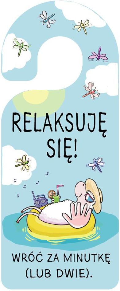 Zawieszka na klamkę Relaks Henry __________________________________________________________________ Dwustronna zawieszka na klamkę wykonana z grubego kartonu, zapakowana w woreczek foliowy. Wymiar: 7,5 cm x 19 cm. EAN: 5907465663762 Głębokość: 2.000000 ISBN: 5907465663762 Rodzaj: Artykuły …