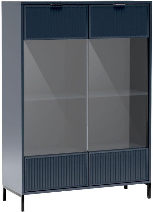 Designerska witryna glamour LINKaSTYLE, polskiego producenta JARSTOL. Elegancka i funkcjonalna. Wykonana z laminowanej płyty meblowej w kolorze indygo. Witryna posiada 6 półek zamykanych przeszklonymi drzwiczkami. Mebel posiada bardzo ciekawe rozwiązanie w postaci 4-rzędowego uchwytu na kieliszki do wina. Posiada również podświetlaną półkę LED oraz system metalowych zawiasów z cichym domykiem. DANE TECHNICZNE: Wymiary: 150 x 104,8 x 40,6 cm (wys./szer./gł.) Materiał: laminowana płyta meblowa, płyta MDF, płyta HDF, okleina ABS, metal, szkło hartowane Rozwiązania: 6 półek zamykanych drzwiczkami, cichy domyk, uchwyt na kieliszki do wina Kolor: indygo, czarny, miedziany Gwarancja: 2 lata Produkt do samodzielnego montażu * Ze względu na różne ustawienia urządzeń elektronicznych na których oglądamy produkty, odcień kolorystyczny może się delikatnie różnić.