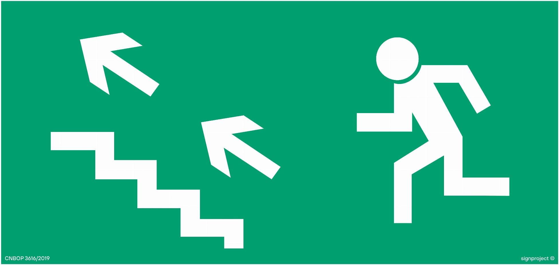 Kierunek Do Wyjścia Drogi Ewakuacyjnej Schodami W Górę Lewo - 20x10cm Zamość