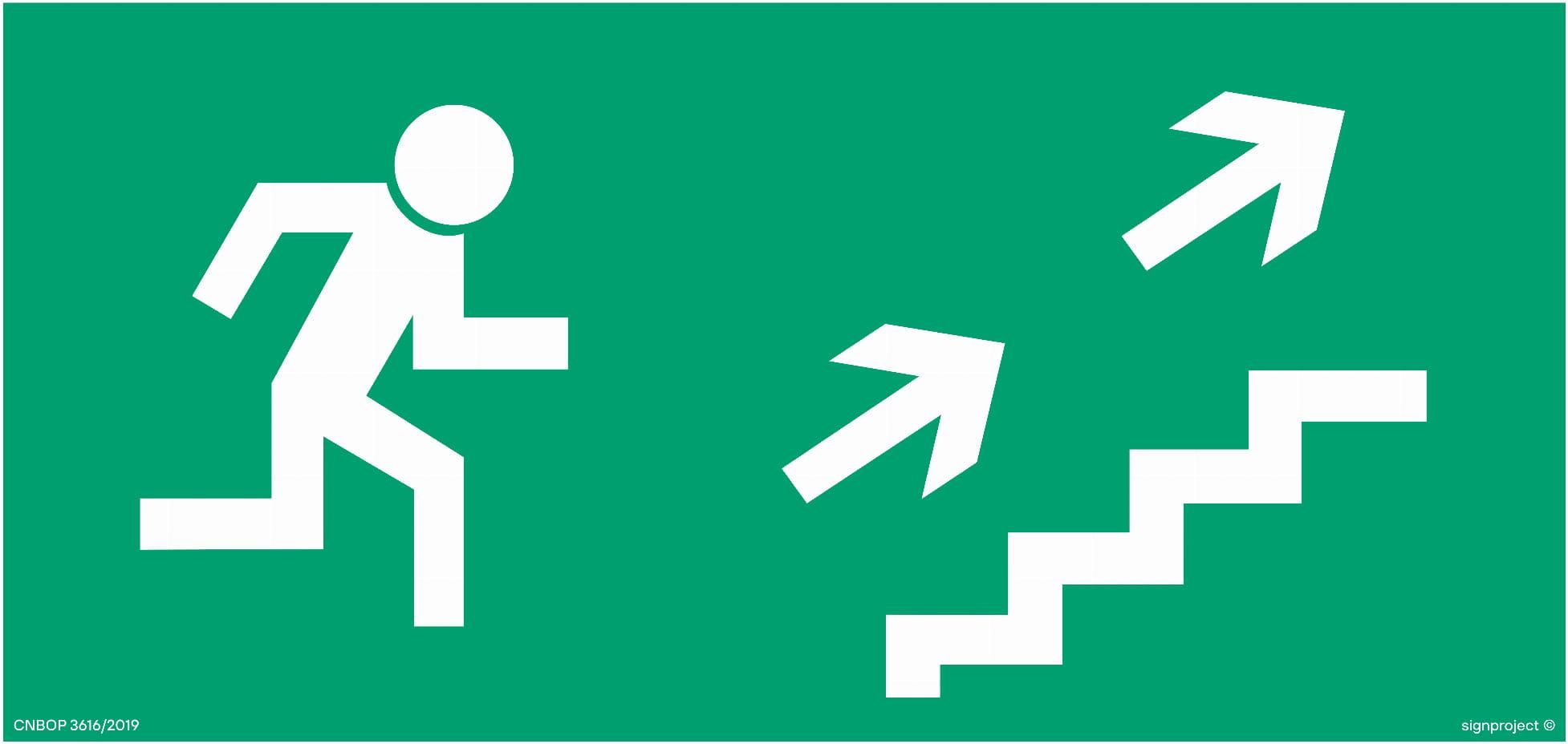 Kierunek Do Wyjścia Drogi Ewakuacyjnej Schodami W Górę Prawo - 20x10cm Zamość