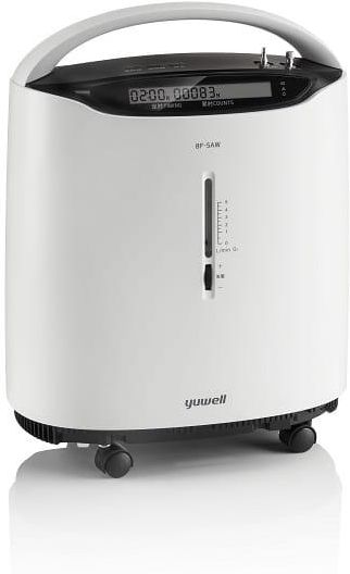 Koncentrator tlenu Yuwell 8F-5A posiada bezpieczną i solidna obudowę wykonaną w całości z tworzywa sztucznego. Posiada funkcje pomiaru czasu w trybie narastającym, umożliwiającą wyświetlanie na ekranie monitora całkowitego czasu eksploatacji.Koncentrator tlenu Yuwell 8F-5A posiada bezpieczną i solidna obudowę wykonaną w całości z tworzywa sztucznego. Posiada funkcje pomiaru czasu w trybie narastającym, umożliwiającą wyświetlanie na ekranie monitora całkowitego czasu eksploatacji.Cechy urządzenia: wyświetlacz LCD; systemy alarmowe; sterowany pilotem (brak baterii w zestawie); kompaktowe wymiary i niska waga; cicha praca. Co zawiera zestaw? Koncentrator tlenu: 1 sztuka; Instrukcja obsługi: 1 egzemplarz; Pilot zdalnego sterowania: 1 sztuka; Kaniula donosowa do tlenu: 1 sztuka Filtr: 4 sztuki; Trójnik: 1 sztuka. Dane techniczne Zasilanie AC: 220+/-22V, 50+/-1HzPobór mocy: 400VAStrumień wyjściowy: 0,5-5l/minCiśnienie wyjściowe: 40-70kPaStężenie tlenu: 87-96%Poziom hałasu: ≤52dBWymiary: 500×390×245 mmWaga: 15,5 kg