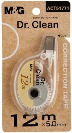 Korektor w taśmie Dr.Clean 5mm x 12m M&GSuper wydajny korektor z taśmą o długości 12mPrecyzyjny mechanizm podający.Suchy system korekcji pozwalający na natychmiastowe pisanie.Dla wygody boczny system podawania taśmy korekcyjnej.Przeźroczysta obudowa pozwala na bieżąco kontrolować ilość pozostałej taśmy.ZatyczkaDługość taśmy: 12mSzerokość: 5mm