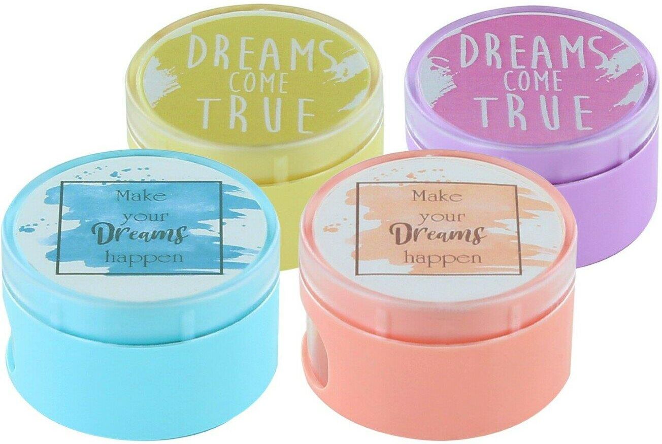 Podwójna metalowa temperówka Quotes Pastell Cechy produktu Pojemnik na ostrużyny wykonanym z wyjątkowo trwałego granulatu plastikowego. Atrakcyjny pastelowy design z cytatami o marzeniach. Wysokiej jakości stalowe ostrza zapewniają precyzyjne temperowanie. Temperówki odpowiednie do kredek i ołówków …