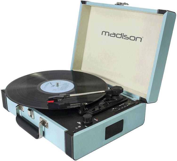 Gramofon w walizce z bluetooth USB SD Madison Ciesz się dźwiękiem swoich cennych płyt winylowych i nagrywaj je na nośniku USB lub SD Gramofon o „wyglądzie retro” w niebiskiej walizce, pozwoli Ci oprócz słuchania płyt winylowych również słuchać nagrań na nośnikach USB i SD. Posiada Bluetooth, …