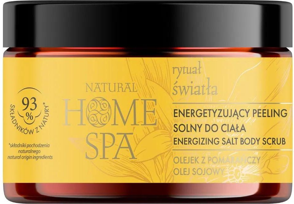 Natural Home SPA energetyzujący peeling do ciała – olejek z pomarańczy oraz olej sojowyEnergetyzujący peeling solny do ciała NATURAL HOME SPA to aż 93% składników pochodzenia naturalnego nawiązujących do tradycyjnego rytuału Światła, zapewniającego energię i witalność dla ciała i zmysłów.Olejkowa formuła peelingu zawiera naturalne ścierniwo w postaci drobinek soli morskiej, które doskonale usuwają martwy naskórek i wygładzają skórę, poprawiając jej jędrność i elastyczność.Zawartość tak drogocennych składników roślinnych jak olejek z pomarańczy, olej awokado, olej sojowy sprawiają, że skóra pozostaje jednocześnie nawilżona, zregenerowana i miękka w dotyku.Energetyzujący, odświeżający zapach cytrusów, cynamonu, goździków i imbiru, w towarzystwie bursztynu i piżma oddziałuje na wszystkie zmysły.Przechowywać w temp. 5–25° C.Produkt przebadany dermatologicznie.Jak używaćNanieś odpowiednią ilość peelingu na wilgotną skórę ciała i masuj kolistymi ruchami. Następnie dokładnie spłucz. Dla uzyskania najlepszych efektów stosuj 1–3 razy w tygodniu.O marce Natural Home SPANatural Home SPA to marka naturalnych kosmetyków stworzona z myślą o celebrowaniu momentów i drobnych przyjemności, dzięki kojącej sile rytuałów.Zaawansowane i starannie opracowane formuły Natural Home SPA czerpią z wiedzy, mądrości i doświadczenia naszych przodków, dlatego odwołują się do tradycyjnych zabiegów, składników i rytuałów pielęgnacyjnych znanych od pokoleń.Intensywne i orientalne zapachy silnie oddziałują na zmysły, będąc swoistą aromaterapią, a wysoka zawartość składników pochodzenia naturalnego doskonale odżywia i pielęgnuje skórę.Natural Home SPA czerpie z uzdrawiającej mocy natury i chce się jej odwdzięczyć, dlatego też wszystkie opakowania marki oraz receptury zostały dobrane tak, aby ograniczyć wpływ produktu na środowisko naturalne.