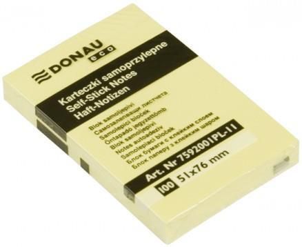 uniwersalne karteczki, w żółtym neutralnym kolorze, idealne do przekazywania wiadomości posiada Zielony Punkt (Der Grüne Punkt) - udział w systemie recyklingu i odzysku odpadów wynikający z przepisów prawa polskiego i UE ilość karteczek: 1x100 w rozmiarze 51x76mm gramatura: 70gsm klej umieszczony wzdłuż krótszego boku klej usuwalny za pomocą wody wykonane z papieru (100% pulpa drzewna) indywidualnie zabezpieczony folią z paskiem ułatwiającym otwieranie kolor jasnożółty