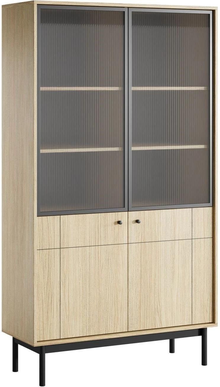 RegałJapandi WT104 z półkami oraz dwoma szafkami ze szklanym, przydymionym frontem marki Piaski w kolorze dąb linea to elegancki i funkcjonalny mebel, idealny do wnętrz inspirowanych stylem japandi. Korpus regału wykonany jest z płyty laminowanej o grubości 16 mm, zabezpieczonej obrzeżem ABS o grubości 0,5 mm, co zapewnia trwałość i odporność na codzienne użytkowanie.Frezowane fronty szafek dodają subtelnego, minimalistycznego uroku, a ich wykończenie w technologii ABS dodatkowo chroni krawędzie.Regał wyposażony jest w półki zamykane frontem szklanym idealne do eksponowania książek, dekoracji lub innych drobnych przedmiotów, oraz dwie zamykane szafki, które oferują praktyczne rozwiązanie do przechowywania. Zawiasy Haefele z cichym domykiem gwarantują delikatne i bezgłośne zamykanie drzwi, co zwiększa komfort codziennego użytkowania. Czarny, metalowy uchwyt w formie gałki oraz drewniane, malowane na czarno nóżki dodają nowoczesnego, kontrastowego akcentu, idealnie współgrając z naturalnym wykończeniem dębu linea.To mebel, który łączy styl z funkcjonalnością, oferując wystarczająco dużo miejsca na przechowywanie oraz uporządkowanie przestrzeni w salonie.Pochodząca z polskiej produkcji, regał Japandi reprezentuje nowoczesny styl jak i skandynawski, który doskonale wpisuje się w różnorodne aranżacje wnętrz. Jego minimalistyczna forma i wyjątkowe wykończenie sprawiają, że jest nie tylko praktycznym, ale także estetycznym dodatkiem do każdego pomieszczenia. Wymiary: 153,5x83,5x39Zapraszamy do zakładek Produkty z rodziny oraz Produkty podobne.Model objęty jest 2-letnią gwarancją producenta.Produkt dostarczymy do Państwa BEZPŁATNIE pod wskazany adres na terenie całego kraju.Mebel wymaga krótkiego montażu, zgodnie z załączoną instrukcją.Co WAŻNE: zgodnie z prawem i naszymregulaminemmają Państwo pełne prawo do zwrotu nieużywanych towarów, jeśli nie spełnią one Państwa oczekiwań.