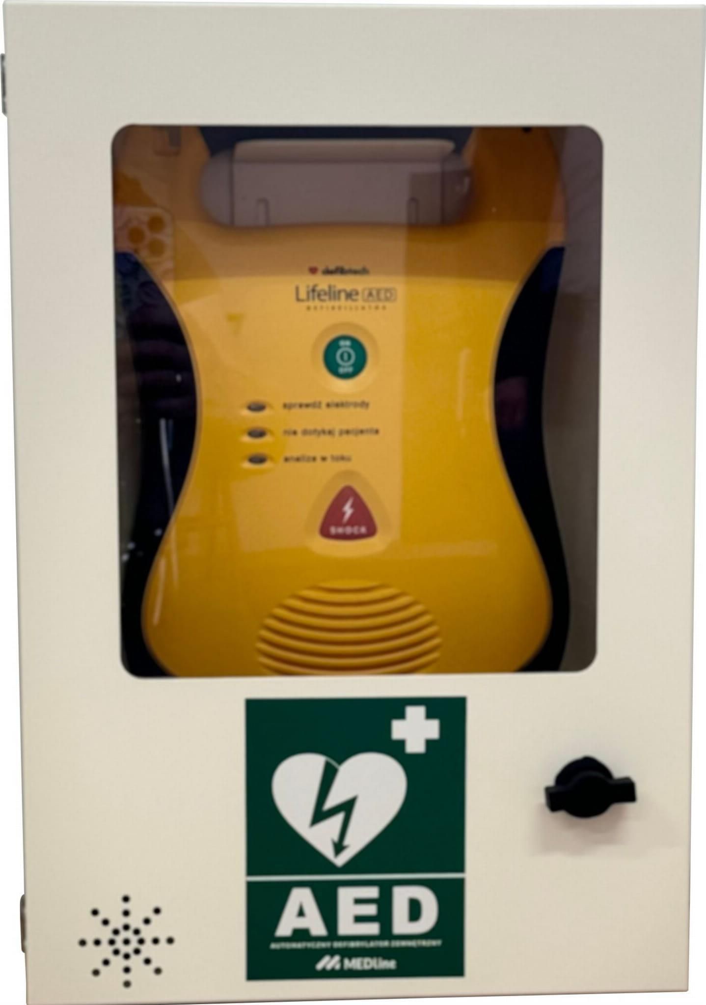 Szafka na defibrylator AED o prostokątnej, metalowej konstrukcji, stanowi doskonałą ochronę urządzeń AED wewnątrz budynków. Kompatybilna z modelami AED Lifeline, Lifeline View oraz Lifeline Pro. Szafka ma kolor metaliczny. Zamykana jest na pyło- i wodoszczelny uniwersalny zamek, który umożliwia jej zamknięcie bez użycia klucza. Solidna obudowa doskonale zabezpiecza defibrylator, a jednocześnie umożliwia szybki dostęp do urządzenia. Szafka na defibrylator AED o prostokątnej, metalowej konstrukcji, stanowi doskonałą ochronę urządzeń AED wewnątrz budynków. Kompatybilna z modelami AED Lifeline, Lifeline View oraz Lifeline Pro. Szafka ma kolor metaliczny. Zamykana jest na pyło- i wodoszczelny uniwersalny zamek, który umożliwia jej zamknięcie bez użycia klucza. Solidna obudowa doskonale zabezpiecza defibrylator, a jednocześnie umożliwia szybki dostęp do urządzenia. Szafka na Defibrylator AED Optymalne dopasowanie dla modeli AED Lifeline Nasza szafka na defibrylator AED została zaprojektowana z myślą o idealnym dopasowaniu do modeli Lifeline. Dzięki temu masz pewność, że Twój defibrylator będzie przechowywany w odpowiednim miejscu, zawsze gotowy do użycia. Bezpieczeństwo i ochrona Dzięki solidnej konstrukcji i wysokiej jakości materiałom, szafka skutecznie chroni i zabezpiecza defibrylator przed uszkodzeniami oraz niekorzystnymi warunkami atmosferycznymi. Twój sprzęt medyczny będzie w pełni chroniony, co daje Ci spokój ducha. Szybki i łatwy dostęp Szafka została zaprojektowana tak, aby umożliwić natychmiastowy dostęp do defibrylatora w sytuacjach kryzysowych. Jej ergonomiczna konstrukcja pozwala na błyskawiczne otwarcie, co jest kluczowe w przypadku nagłych wypadków. Pyłoszczelny i wodoszczelny zamek Dzięki zamkowi, który jest zarówno pyłoszczelny, jak i wodoszczelny, możesz mieć pewność, że Twój defibrylator będzie w pełni chroniony przed zanieczyszczeniami oraz wilgocią, co zwiększa jego żywotność i niezawodność. Trwała i solidna konstrukcja Obudowa szafki wykonana jest z blachy o grubości 0,8 mm, co zapewnia jej wytrzymałość i odporność na uszkodzenia. Zainwestuj w solidną konstrukcję, która będzie służyć przez wiele lat. Dane techniczne wymiary szafki: 30 x 44 x 13 cm, wymiar okna: 212 mm x 240 mm, wymiar przejrzystej pleksy: 248 mm x 275 mm, kolor szafki: biały.