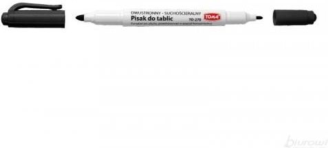 Marker suchościeralny Toma TO-270 dwustronny czarny Marker do pisania po tablicach suchościeralnych z tuszem proszkowym. Dwustronny z końcówką grubszą i cieńszą. cechy:- końcówka okrągła o szerokości: 1,5mm i 0,8mm- kolor tuszu: czarny- przeznaczenie: tablice suchościeralne