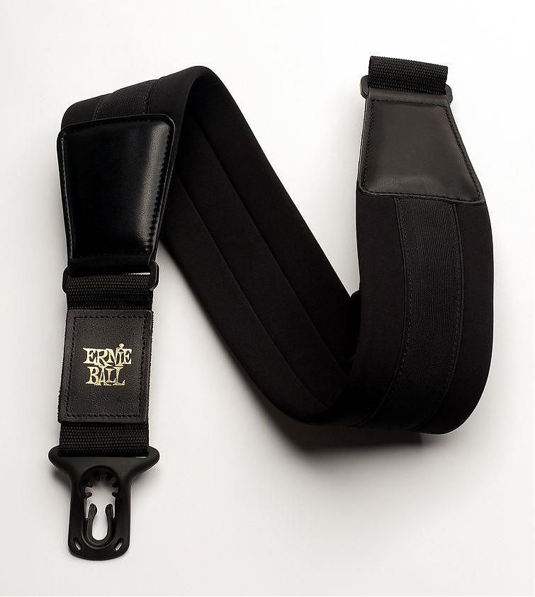 Pasek do gitar. Zaczepy typu Polylock system. Neoprane strap materiał (zabezpiecza przed wypięciem paska) z logiem ERNIE BALL. Szerokość: 7.60 cm (szerszy), długość: od 116 cm do 137 cm. Kolor: Czarny.
