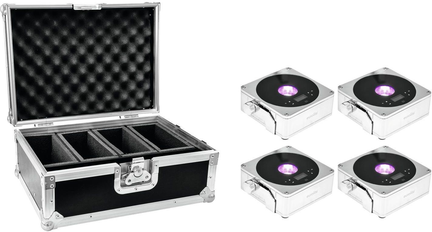 EUROLITE Set 4x AKKU IP Flat Light 1 chrome + Case Żarki