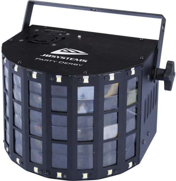 JB Systems PARTY DERBY - efekt świetlny LED i strobo. Ekstremalnie kompaktowe urządzenie wyposażone w 2 różne efekty świetlne zapewniające niesamowite wrażenia wizualne. Cechy: - efekt LED DERBY emituje silne, skupione wiązki świetlne w kolorach czerwonym, zielonym, niebieskim i białym - 16 białych diód LED o zimnej barwie pozwala uzyskać wszystkie rodzaje efektu strobo - rewelacyjne gotowe programy które można wykorzystać na wiele różnych sposobów i sterować w trybach: DMX: 1 lub 5 kanałowym tryb standalone: z aktywną czułością na dźwięk (przez wbudowany mikrofon) lub w pełni automatycznie ze stałą szybkością przechodzenia wiązek tryb IR-remote: łatwa obsługa efektu za pomocą dołączonego zdalnego pilota - możliwość połączenia kilku urządzeń w trybie master/slave - 3 cyfrowy wyświetlacz ułatwia nawigację po menu - bardzo niski pobór mocy: 21W makasymalnie - wejście/wyjście sieciowe IEC umożliwia umieszczenie użądzenia w łańcuchu zasilania Specyfikacja techniczna: - zasilanie: AC 100~240V, 50/60Hz - bezpiecznik: 250V T1A (szklany 20mm) - całkowity pobór mocy: 28W - tryb sound: wbudowany mikrofon - połączenie DMX: 3pin XLR męski/żeński - kanały DMX: 1 lub 5 - diody LED DERBY: 1x3W czerwona + 1x3W zielona + 1x3W niebieska + 1x3W biała - diody LED FLASH: 16x0.5W białe diody LED - temperatura pracy: 10°C to 40°C - wymiary: 190x258x182mm - waga: 2kg