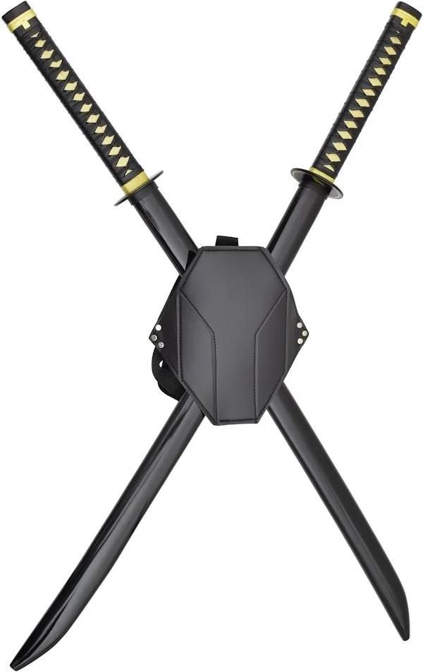 Katany HATTORI HANZO DEADPOOL – zestaw 2 szt. to wyjątkowa propozycja dla fanów kina akcji, kultowego antybohatera oraz miłośników japońskiej broni dekoracyjnej. Repliki inspirowane katanami używanymi przez postać znaną z ekranizacji zapewniają efektowny wygląd, dynamiczną sylwetkę oraz klimat rodem z filmowych pojedynków. Zestaw tworzą dwie stylowe katany umieszczone w wysokiej jakości kaburze naramiennej z ekoskóry, pozwalającej na wygodne przenoszenie oraz ekspozycję broni w komplecie – idealny wybór dla cosplayerów, kolekcjonerów i miłośników wyjątkowych replik. Ostrza wykonano ze stali, co nadaje mieczom odpowiednią wagę, realizm oraz trwałość wizualną. Drewniane rękojeści zostały oplecione tradycyjną, dekoracyjną taśmą w czarno-żółtym kolorze, co nadaje zestawowi wyjątkowego charakteru inspirowanego filmową stylistyką. Pochwy z lakierowanego drewna idealnie komponują się z całością, podkreślając elegancję i dbałość o detale. Metalowe tsuby, ozdobione emblematem przypominającym charakterystyczne „oczy maski”, dopełniają klimatu inspirowanego ekranowym bohaterem. Kabura naramienna, wykonana z wysokiej jakości skóry ekologicznej, umożliwia noszenie katan na plecach w kultowym skrzyżowanym układzie. Regulowane paski zapewniają wygodę i dopasowanie, dzięki czemu zestaw sprawdzi się zarówno jako element stroju cosplayowego, jak i efektowna dekoracja ściany czy kolekcjonerskiej gabloty. Najważniejsze cechy produktu - zestaw dwóch dekoracyjnych katan inspirowanych bronią z filmu Deadpool - stalowe głownie i drewniane pochwy - drewniane rękojeści z tradycyjnym oploceniem - metalowe tsuby z charakterystycznym motywem - kabura naramienna z ekoskóry zapewniająca efektowną ekspozycję i wygodne noszenie - idealne do cosplayu, dekoracji i kolekcji Ten zestaw katan to obowiązkowa pozycja dla każdego fana Deadpoola oraz osób szukających wyjątkowej dekoracji lub elementu cosplayu, który przyciąga wzrok i robi znakomite wrażenie. Idealny zarówno jako prezent, jak i część kolekcji broni filmowej czy samurajskiej. - długość całkowita: 965 mm (z pochwą 1045 mm) - długość ostrza: 650 mm - waga: 660 g (z pochwą 855 g) - materiał ostrza: stal - rękojeść: drewno z oplotem - pochwa: drewno - kabura: ekoskóra