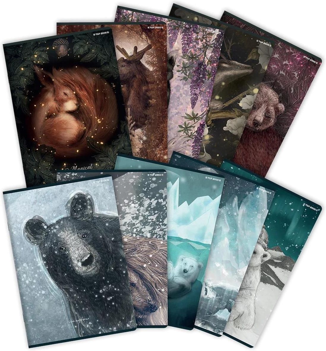ZESZYT TOP 2000 FOREST/ICE A5/32K KRATKA Z MARGINESEM Kolekcja zeszytów inspirowana życiem leśnych i arktycznych zwierzaków - łączy w sobie 2 zupełnie inne światy w podobnym stylu ilustracji. 5 okładek przedstawia zwierzęta zamieszkujące lasy, utrzymane w nieco tajemniczym klimacie. Kolejne 5 to …