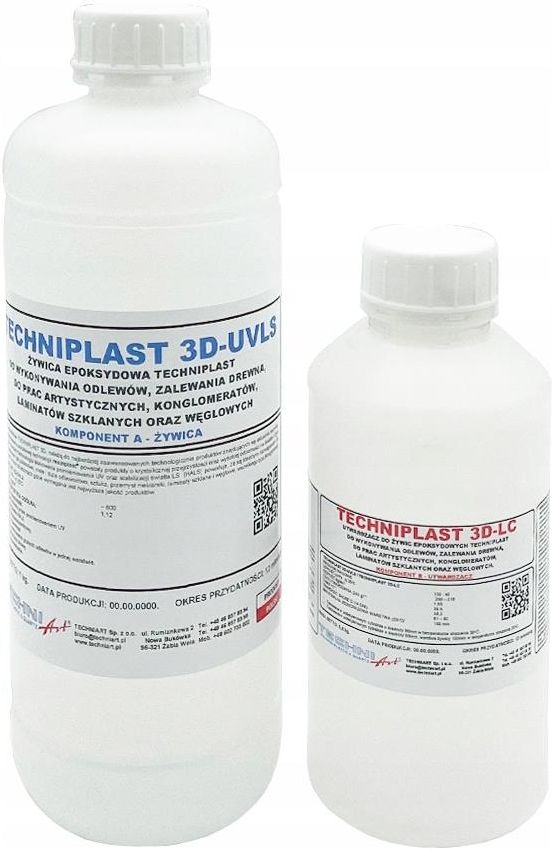 Żywica epoksydowa TECHNIPLAST 3D- UVLS razem z utwardzaczem TECHNIPLAST 3D- LC 0,7 kg Krystalicznie czysta żywica epoksydowa do wykonywania odlewów do grubości 10 cm Komponent A żywica 3D UVLS - 0,5 kg Komponent B utwardzacz 3D LC - 0,2 kg Proporcje 100:40 Zastosowanie: do wykonywania małych i …