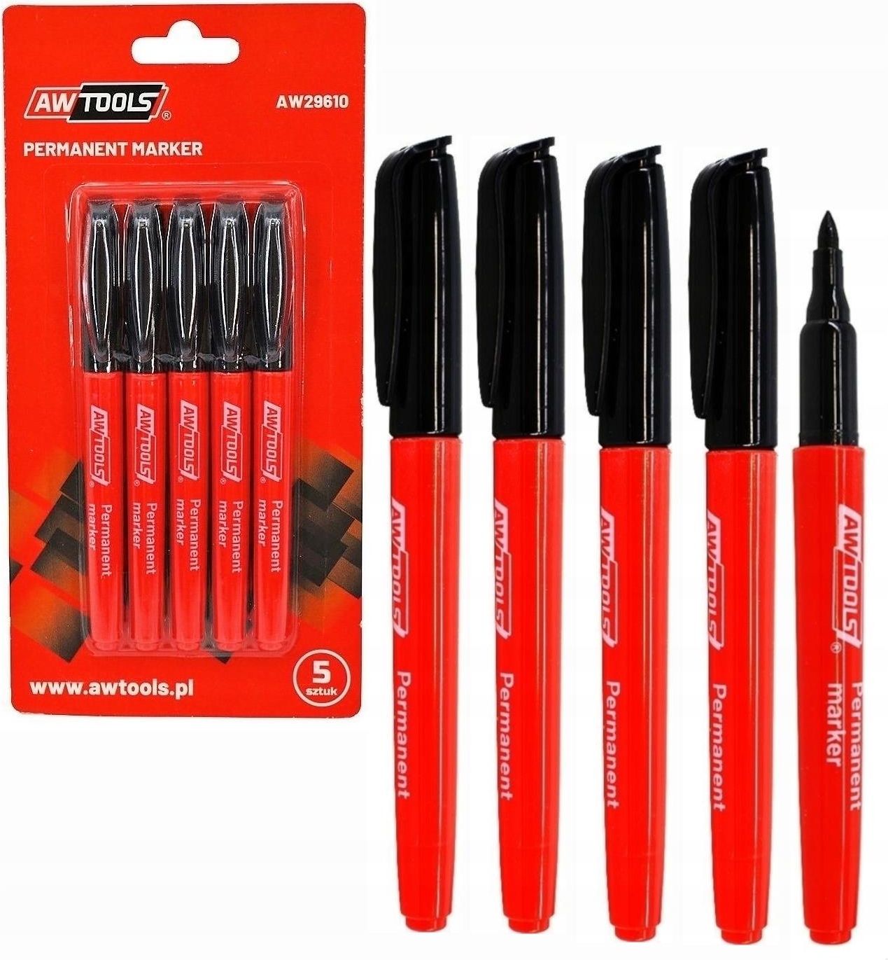 Awtools Markery Permanentne Cienkie Czarne 5 Szt. Żarów