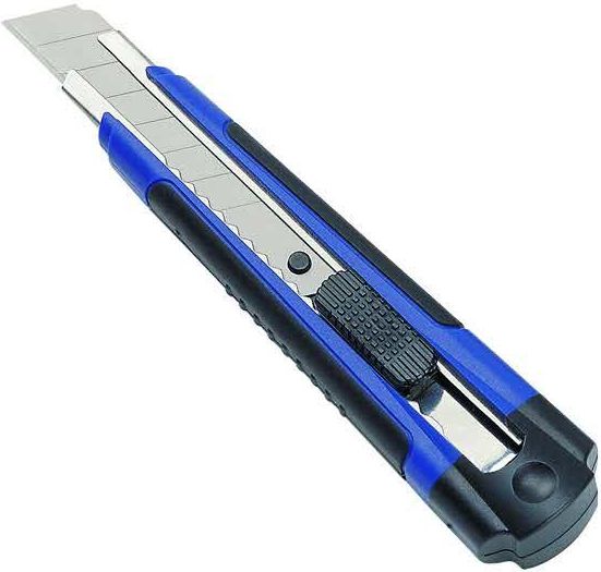 Noże Dahle Allround Cuttermesser optymalnie nadają się do łatwego montażu i majsterkowania lub do zastosowań hobbystycznych Nóż jest wyposażony w bardzo ostre ostrze do łamania (12 ogniw) ze stali nierdzewnej, które jest wyposażone w mechanizm blokady blokującej W obudowie z tworzywa sztucznego ABS zintegrowana jest zdejmowana pomoc do łamania, za pomocą której można łatwo złamać ostrze Dzięki ergonomicznie ukształtowanej, gumowanej strefie chwytu nóż pewnie leży w dłoni i nie ślizga się nawet przy zwiększonym nacisku Ostrze można precyzyjnie ustawić dzięki metalowej prowadnicy i zatrzaskuje się bezpiecznie i nie zsuwa się. Dwa wymienne ostrza znajdują się w magazynie z ostrzami części uchwytowej