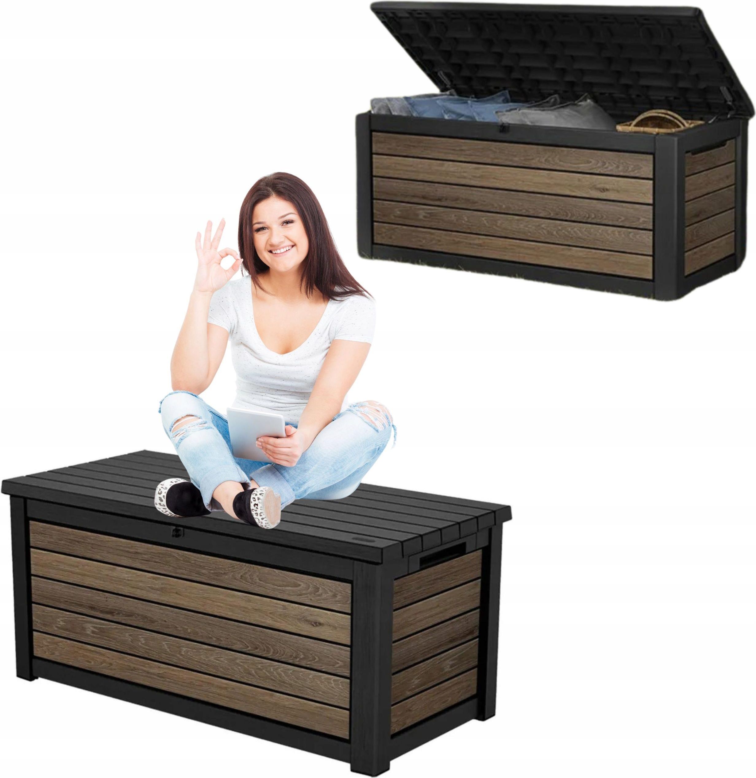 Keter Solidna Pojemna Skrzynia Ogrodowa Siedzisko Deco Deck 630L Walnut 7653 Żarów