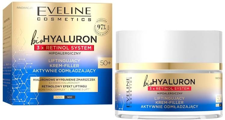 Krem Eveline Cosmetics Biohyaluron 3Xretinol System Liftingujący Aktywnie Odmładzający 50+ na dzień i noc 50ml Żarów