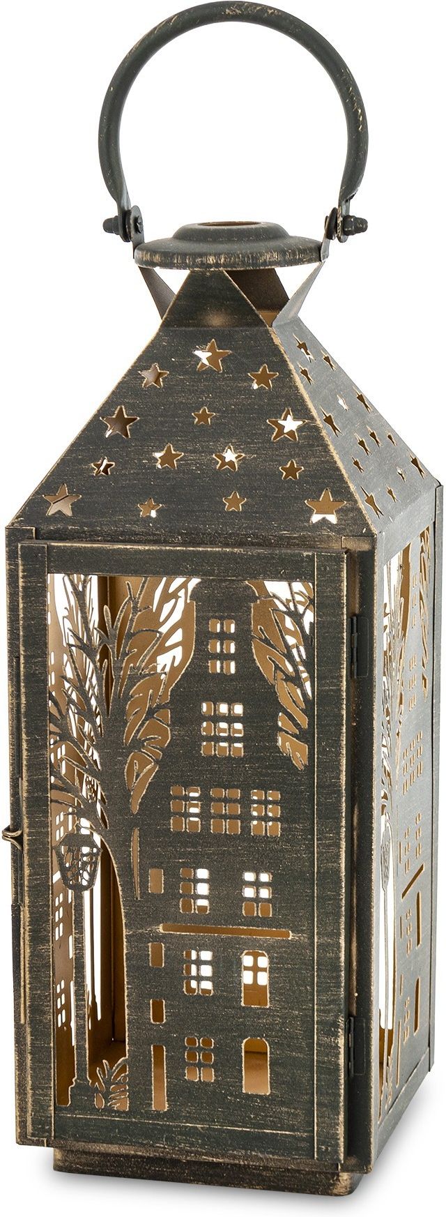 Lampion Sezonowe / Boże Narodzenie / Figurki i Ozdoby / Figurki I Ozdoby Metalowe Rozmiar: 50x15,5x16,5 Pakowanie: 6/1 Waga: 1.26 kg Materiał: metal Kolor: ciemny zielony