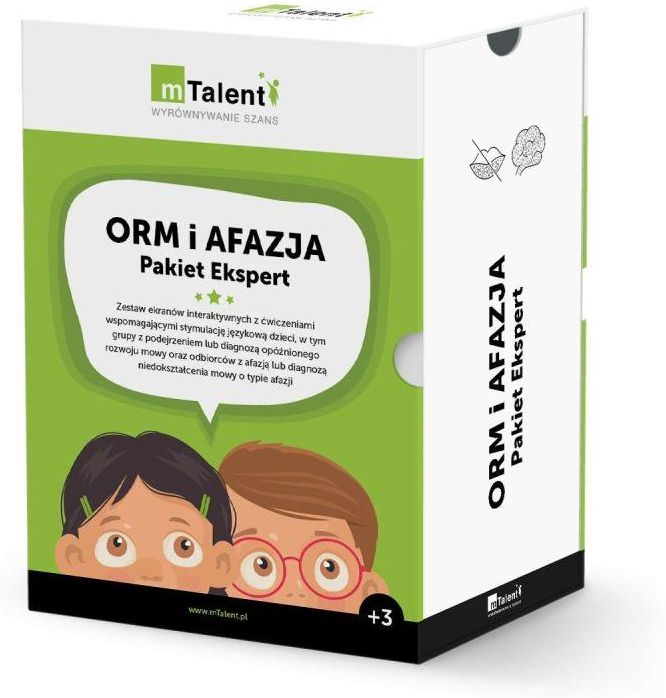 mTalent ORM+Afazja Pakiet Ekspert mTalent ORM+Afazja Pakiet Ekspert to zestaw dwóch specjalistycznych programów - łącznie blisko 3000 ekranów interaktywnych. Prawie 3000 ekranów interaktywnych z ćwiczeniami wspomagającymi stymulację językową dzieci, w tym grupy z podejrzeniem lub diagnozą …