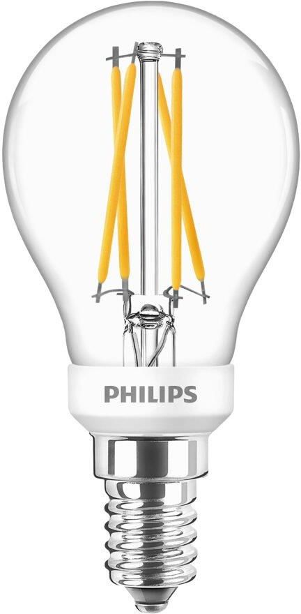 Żarówka LED E14 Kulka P45 3.4W = 40W 470lm 2200-2700K Ciepła CRI90 FILAMENT Ściemnialna WarmGlow Philips Korzyści z zastosowania naszego produktu Wysoka wydajność energetyczna: Zużywa jedynie 3.4W energii, zapewniając światło o mocy odpowiadającej tradycyjnej żarówce 40W, co przekłada się na …