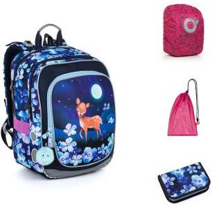 Zestaw do szko艂y sk艂adaj膮cy si臋 z plecaka, pi贸rnika, worka i pelerynki na plecak Komplet szkolny sk艂ada si臋 z produkt贸w: ENDY 23002 - Lekki plecak z sarenk膮, PENN 23002 - Pi贸rnik szkolny z dwoma skrzyd艂ami, ZUZA 19045 - Worek na obuwie, ZIGI 17002 - Peleryna na plecak
