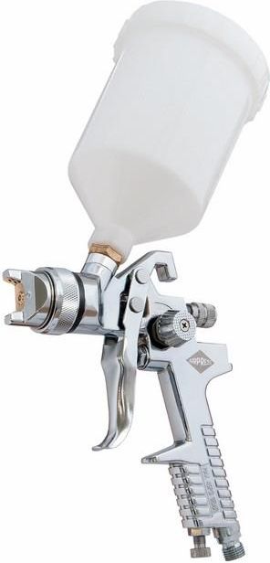 Pistolet lakierniczy Airpress 45191 Pistolety z serii 45191 należą do grupy HP czyli wysokociśnieniowych. Potrzebują ciśnienia na poziomie 3,5 – 4 bar ale zużywają mniej powietrza od HVLP, dlatego można je używać z kompresorami o mniejszej wydajności. Dostępne są wersje z dyszą 1.3 , 1.4 , 1.7 oraz 2.0mm w zależności od nakładanej powłoki i jej gęstości. Szeroki zakres dysz pozwala nanosić lakiery, grunty, lakierobejce oraz inne powłoki o różnej gęstości. Górny zbiornik o pojemności 600ml ułatwia manewrowanie pistoletem podczas malowania. Regulacja strumienia oraz dozowania materiału usprawni malowanie w zależności od typu lakieru. Bardzo popularne ze względu na łatwość obsługi i niskie koszty eksploatacji. Parametry techniczne Model Typ Ciśnienie (bar) Zużycie powietrza Dostępne dysze 45102 HVLP 2,0 - 2,5 120 - 140 l/min 0,8 / 1,0 / 1,2 mm 45191 HP 3,5 - 4,0 180- 300 l/min 1,3 / 1,4 / 1,7 / 2,0 mm 45103 HP 3,5 - 4,5 240 - 320 l/min 1,4 / 1,7 / 2,0 mm 45192 HVLP 2,0 - 3,0 340 - 400 l/min 1,2 / 1,3 / 1,4 mm 45194 LVMP 2,5 - 3,5 260 - 380 l/min 1,3 / 1,4 / 1,8 / 2,0 / 2,2 mm 45184 HP 3,5 - 5,0 300 - 380 l/min 2,5 / 3,0 mm Poniższa tabela przedstawia tylko poglądowo dobór średnicy dyszy do nakładanego materiału. W zależności od producenta, typu materiału i jego składu a zarazem gęstości i lepkości może być zastosowana inna średnica dyszy. Wielu producentów farb i lakierów sugeruje zastosowanie odpowiedniej dyszy do konsystencji swoich produktów. Powłoka HP HVLP LVMP lakier bezbarwny 1,3 - 1,4 1,3 - 1,4 1,2 - 1,4 lakier uniwersalny 1,3 - 1,4 1,3 - 1,4 1,3 - 1,4 lakiery wodne 1,7 - 2,5 1,7 1,8 - 2,2 baza 1,3 - 1,4 1,3 - 1,4 1,2 - 1,4 podkład 1,4 - 2,0 1,3 - 1,4 1,2 - 1,8 wypełniacz 1,7 - 2,0 1,4 1,4 - 1,8 impregnaty wodne 1,3 - 1,7 1,2 - 1,4 1,3 - 1,4 bejca 1,3 - 1,4 1,0 - 1,3 1,2 - 1,4 lakierobejca 1,4 - 1,7 1,7 1,8 - 2,0 szpachla natryskowa 2,5 - 3,0 - 2,0 - 2,2 lakier strukturalny 2,5 - 3,0 - 2,0 - 2,2 powłoki konserwujące 2,5 - 3,0 - 2,0 - 2,2 grunt 1,7 - 2,0 1,4 - 1,7 1,8 - 2,2