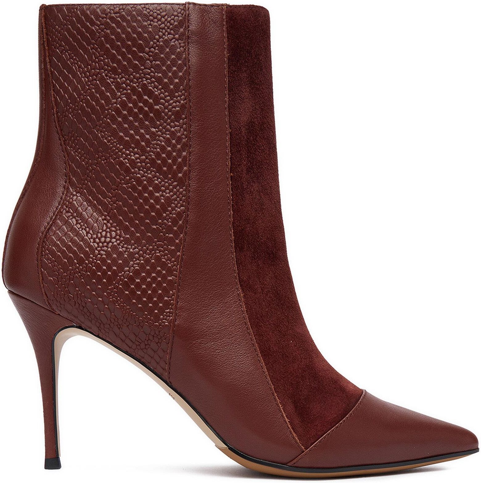 Podkreśl swoją wyjątkowość z botkami marki Eva Minge – idealnym połączeniem elegancji i wyrazistego stylu! Te skórzane buty zachwycają szpilką, która dodaje sylwetce lekkości, oraz szpiczastym noskiem, który wpisuje się w najnowsze trendy. Ich unikalny wężowy motyw sprawia, że każda stylizacja zyskuje charakteru i szyku. To doskonały wybór dla kobiet, które cenią sobie zarówno modny wygląd, jak i najwyższą jakość wykonania. Stwórz odważny, a zarazem elegancki look z botkami od Eva Minge!