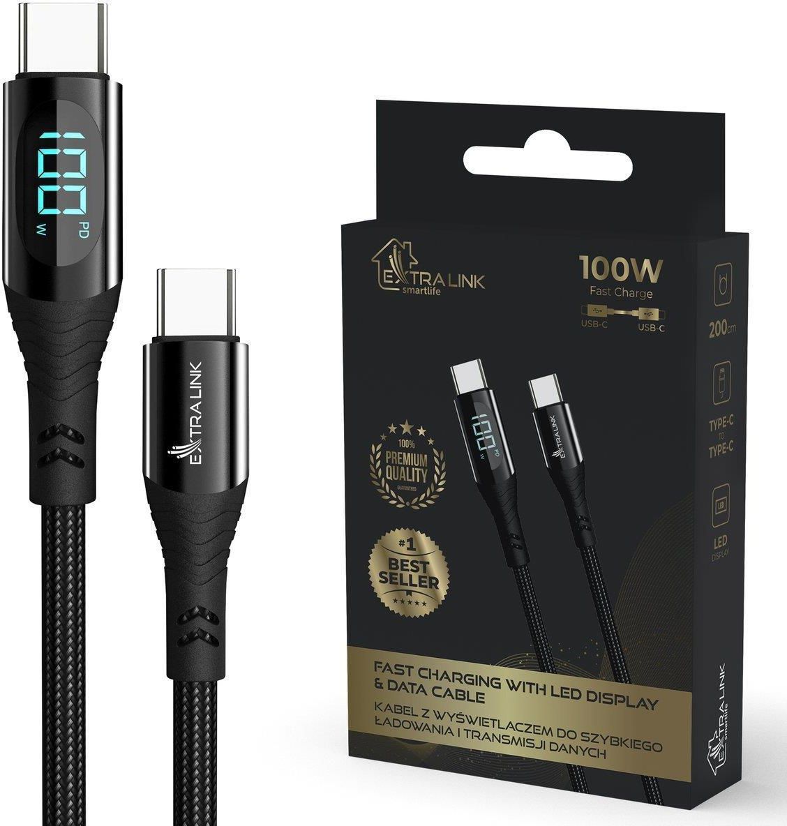 Extralink Kabel Smart Life USB Type-C to Type-C Braided z wyświetlaczem LED Czarny (CABESL04) Żary