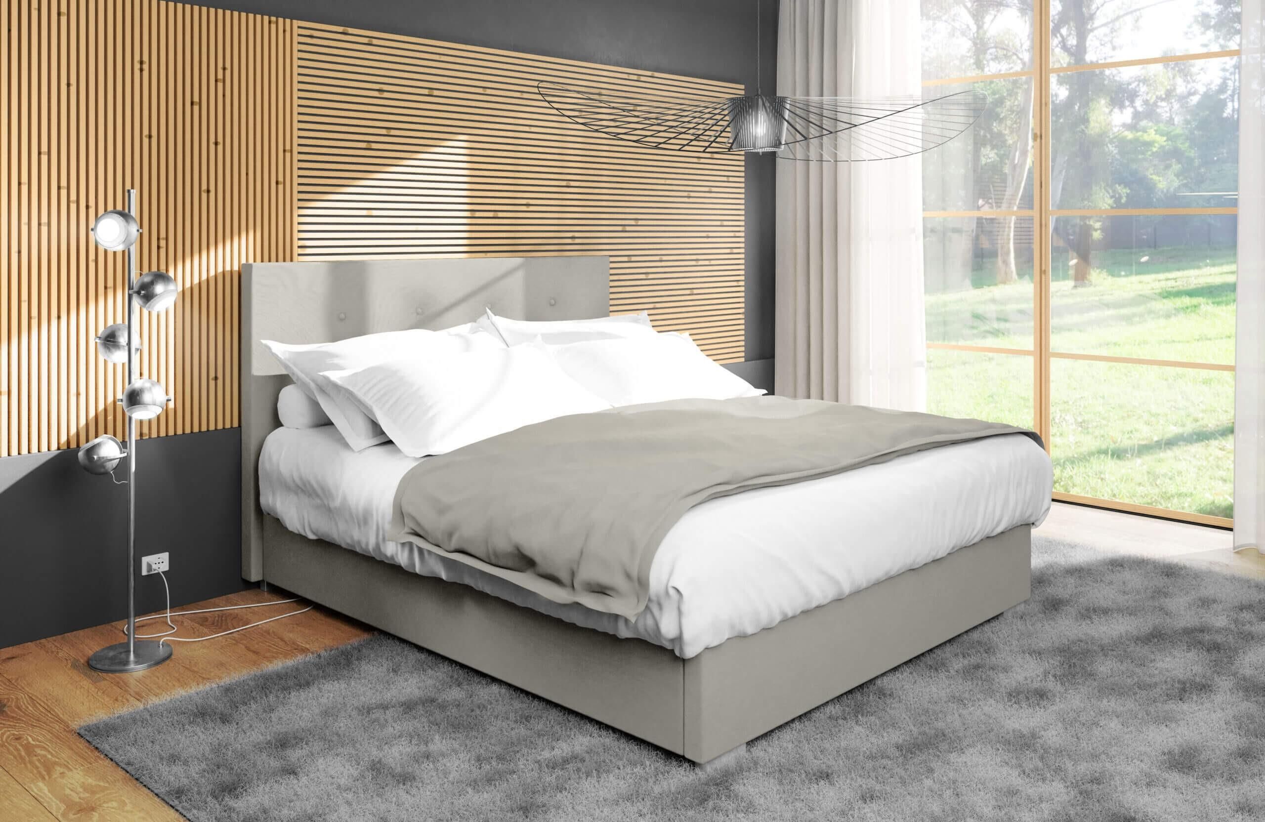 ŁÓŻKO ESSENTIAL TAPICEROWANE Z POJEMNIKIEM NA POŚCIEL Łóżko tapicerowane Janpol Essential jest doskonałym wyborem dla osób, które stawiają na komfort, schludny wygląd ale również względy praktyczne, takie jak dodatkowe miejsce, które zapewnia pojemny pojemnik na pościel. Tapicerowane wezgłowie z …